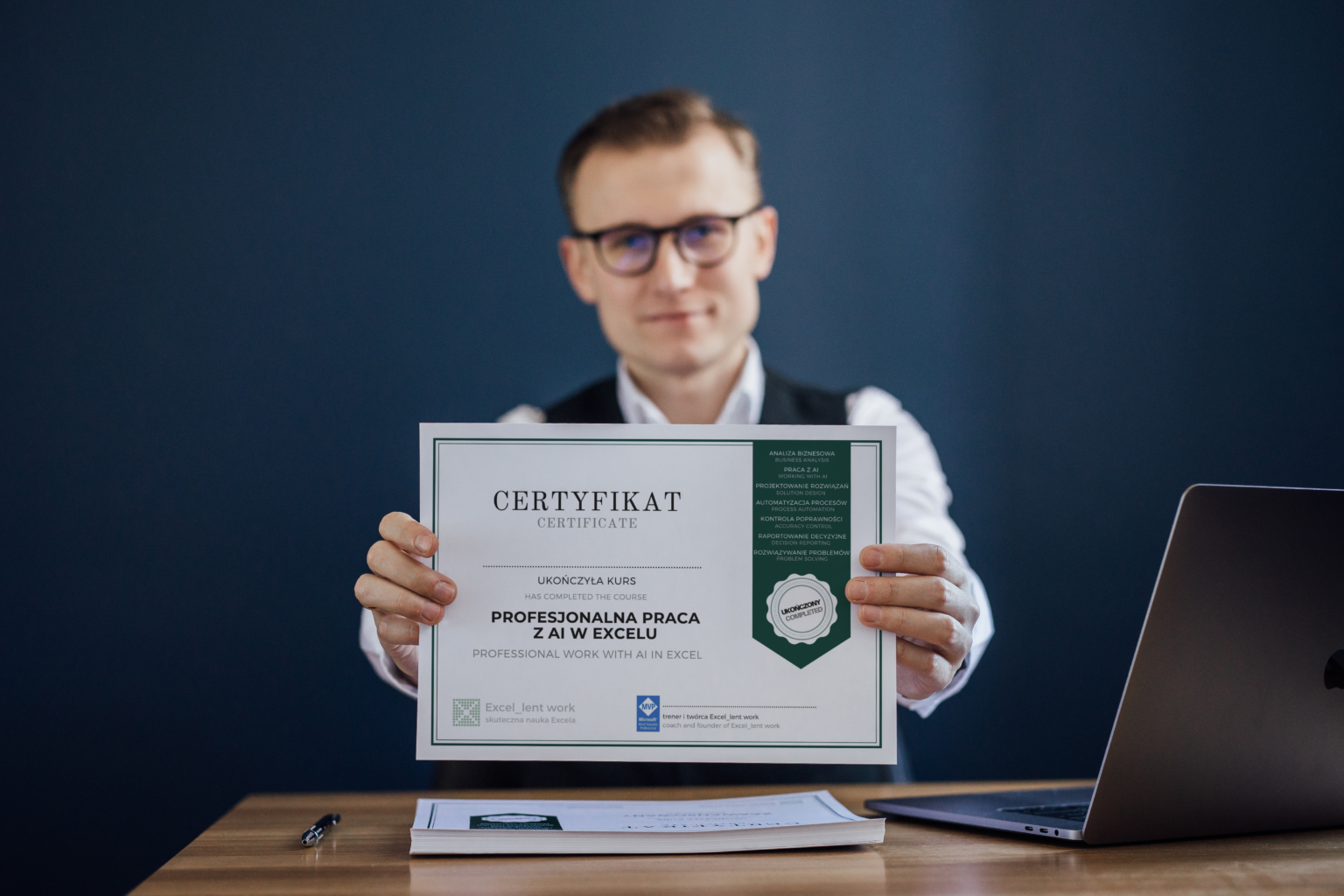 Dzięki certyfikatowi pracodawca będzie wiedział, że uczyłeś się obsługi Excela i jesteś już na pewnym stopniu znajomości obsługi tego programu.